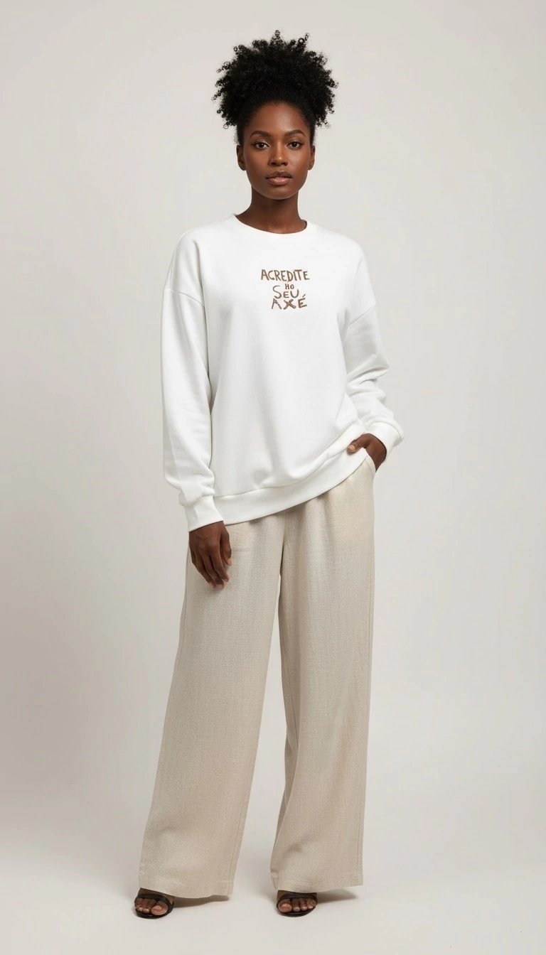 Blusa moletom gola careca, unisex, com bordado frontal "Acredite no Seu Axé"
